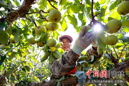 看著蘋果梨成熟豐收的景象,公司總經(jīng)理姜成奎也十分高興,辛苦一年終于有了成果。“果園30公頃的土地種植了7000棵梨樹,蘋果梨樹大約有5500多棵,也種植了南果梨、楊梨等等!敝钢麍@里的大片梨樹,姜成奎向記者介紹,今年又是一個(gè)豐收年,預(yù)計(jì)能收獲120萬斤到150萬斤左右的蘋果梨。