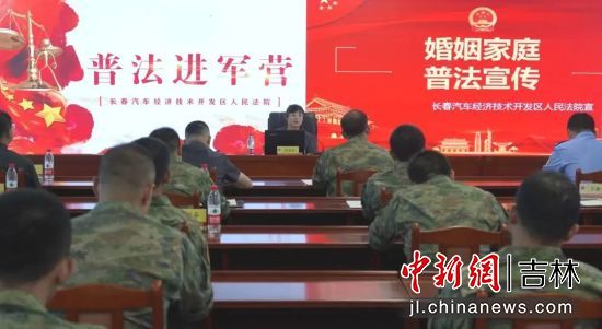 中新網(wǎng)吉林新聞7月25日電 (譚偉旗 張贏予)為助力部隊(duì)法治建設(shè),近日,在“八一”建軍節(jié)即將到來(lái)之際,長(zhǎng)春汽車經(jīng)濟(jì)技術(shù)開(kāi)發(fā)區(qū)人民法院副院長(zhǎng)楊瑞平帶領(lǐng)綜合審判庭、立案庭、司法警察大隊(duì)的法官干警到軍營(yíng)開(kāi)展“普法進(jìn)軍營(yíng)”活動(dòng),為“最可愛(ài)的人”送去一場(chǎng)量身定制的普法套餐。