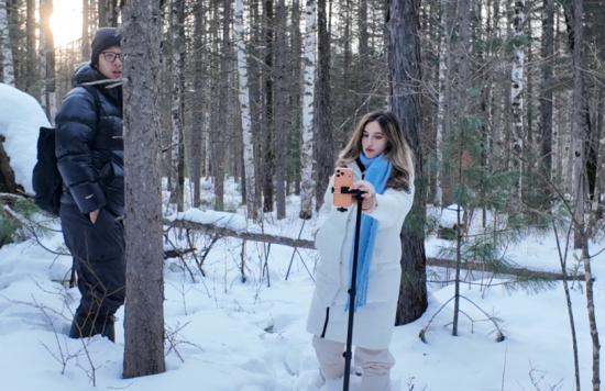 12月20日,國際媒體采風團一行走進長白山聚龍火山石林體驗雪谷穿越,3.1公里的徒步路線上,火山浮石覆雪而立,溪水潺潺在白雪間流過,原生態(tài)森林雪景讓采風團成員不時駐足驚嘆,快門聲此起彼伏。