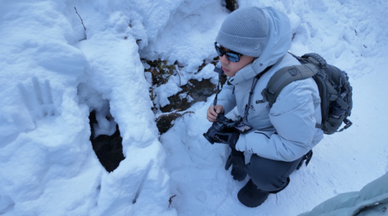 深入雪谷腹地,采風團一行涉入尚未冰封的溪水,手扶古木,沿溪而行!斑@種體驗太美好了,在滿是積雪的森林深處行進,感覺太奇妙了!泵绹W(wǎng)絡博主于中美驚嘆道。