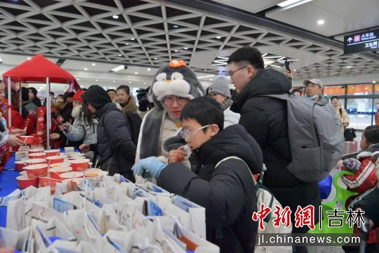在出站口,《大東北我的家鄉(xiāng)》音樂響起,游客剛下火車便被充滿東北風情的快閃表演吸引,免費品嘗的凍柿子、凍梨、冰糖葫蘆,免費領(lǐng)取綠園文旅游玩攻略和多種購物優(yōu)惠券,讓全國各地的游客剛踏上東北的土地,就感受到的東北人的熱情。