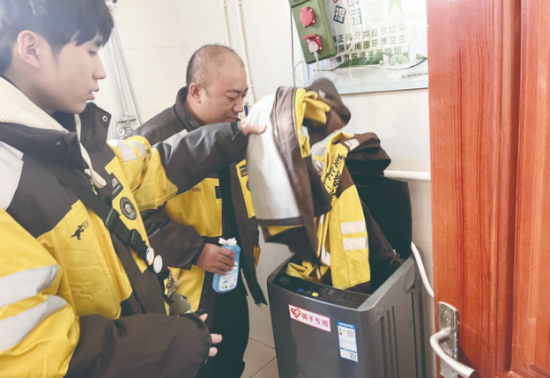 1月19日一早,記者走進(jìn)服務(wù)驛站時(shí),已有幾位騎手在此休息。干凈整潔的床鋪、沙發(fā)、桌椅,晾衣架、飲水機(jī)、微波爐、礦泉水、應(yīng)急藥品等一應(yīng)俱全。“這個(gè)服務(wù)驛站特別好,旁邊就是美團(tuán)的工作站點(diǎn),每天開完早會(huì)或者不忙時(shí),我們都會(huì)來這休息,吃個(gè)飯、喝口水,告別風(fēng)餐露宿。衣服臟了還可以用洗衣機(jī)洗,特別省心,就像家一樣!蓖赓u員郭蕊說。