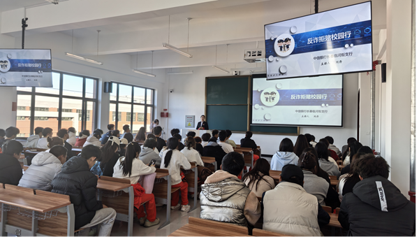 活動(dòng)現(xiàn)場(chǎng),臨河街支行的工作人員結(jié)合高校校園詐騙的高發(fā)特點(diǎn),以通俗易懂的語(yǔ)言為師生們帶來了一場(chǎng)干貨十足的反詐宣講。宣講環(huán)節(jié)中,工作人員首先從“什么是電信網(wǎng)絡(luò)詐騙”切入,系統(tǒng)講解了電信網(wǎng)絡(luò)詐騙的定義、常見類型及隱蔽性、迷惑性特點(diǎn),讓師生們對(duì)這類違法犯罪行為建立起清晰認(rèn)知。隨后,通過“以案說詐”的形式,工作人員選取了近年來高發(fā)的校園貸、刷單返利、冒充老師同學(xué)借錢、虛假購(gòu)物退款等典型詐騙案例,深入剖析了詐騙分子的作案手法、話術(shù)陷阱以及受害者的受騙心理,用真實(shí)案例敲響安全警鐘,讓師生們直觀感受詐騙的危害性。