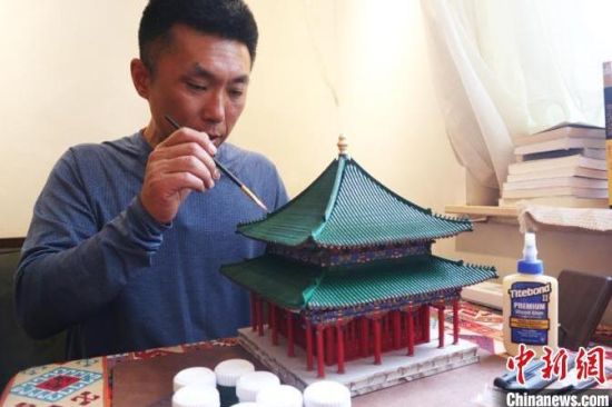 “根本停不下來(lái),比小時(shí)候玩的積木更吸引我。”說(shuō)話時(shí),王雪松的眼睛一直沒(méi)有離開(kāi)“五爺廟”。那是她的一件新玩具,她在用顏料彩繪房梁,這件新玩具已經(jīng)進(jìn)入上色階段,不日將完工。
