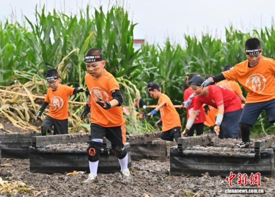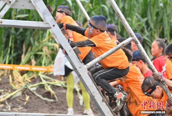 7月25日,2025斯巴達(dá)勇士兒童賽長春站在卡倫湖力旺實(shí)驗(yàn)學(xué)校開賽。當(dāng)天大雨傾盆,參賽的小選手們熱情不減,紛紛化身“小勇士”,在泥濘的賽道上勇闖障礙、攀爬坡道。圖為參加斯巴達(dá)勇士兒童賽的選手在比賽中。中新社記者 張瑤 攝