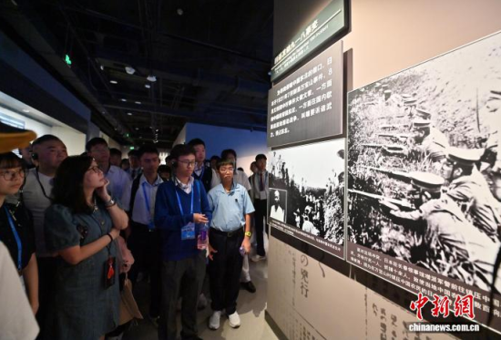 8月11日,吉林長(zhǎng)春,香港青年參觀東北淪陷史陳列館。為紀(jì)念中國(guó)人民抗日戰(zhàn)爭(zhēng)暨世界反法西斯戰(zhàn)爭(zhēng)勝利80周年,數(shù)十名香港青年走進(jìn)東北淪陷史陳列館,通過(guò)館內(nèi)大量珍貴文物和歷史資料,深入了解東北人民在抗戰(zhàn)時(shí)期所經(jīng)歷的苦難歲月以及他們英勇抗?fàn)幍氖论E。中新社記者 張瑤 攝
