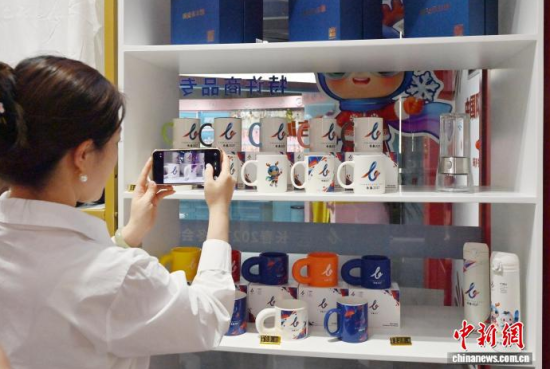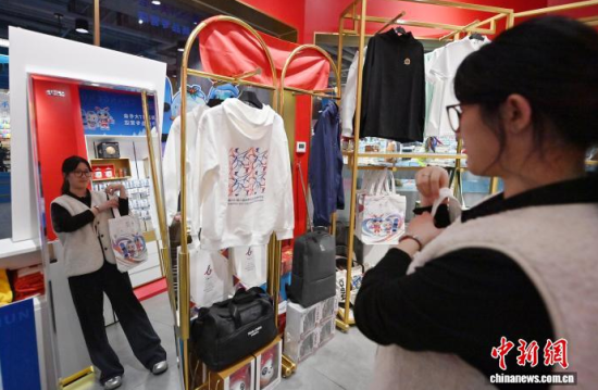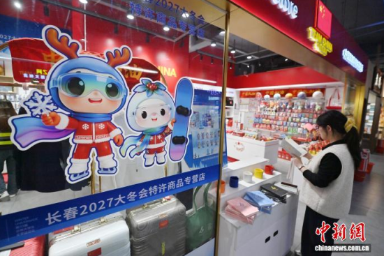 4月16日,長春2027第33屆世界大學生冬季運動會特許商品正式開售,市民在專營店選購商品。中新社記者 張瑤 攝