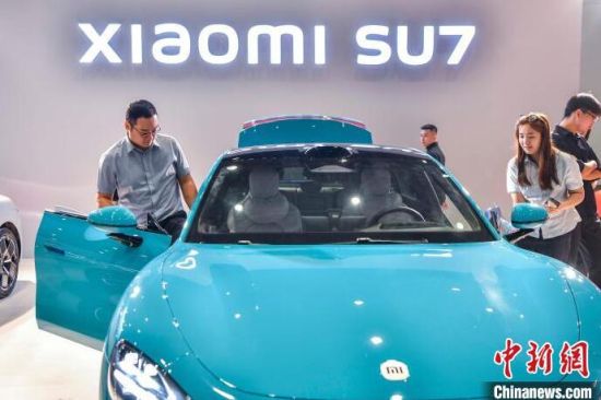 9月13日,海南?,車模助陣海南金秋車展。當(dāng)日,因超強(qiáng)臺風(fēng)“摩羯”而兩度延期的2024海南金秋車展暨智能網(wǎng)聯(lián)新能源車展在海口舉行。作為臺風(fēng)災(zāi)后海南的首場車展,本次展出面積達(dá)5萬平方米,共有近百個汽車品牌參展,其中新能源車型占比70%。中新社記者 駱云飛 攝