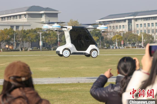 1月1日,江蘇南京,由東南大學(xué)科研團(tuán)隊(duì)自主研發(fā)的國內(nèi)首輛分布式電驅(qū)動(dòng)飛行汽車“東大·鯤鵬1號(hào)”驚艷亮相。據(jù)了解,該飛行汽車技術(shù)源于東南大學(xué)機(jī)械工程學(xué)院車輛工程系與江蘇省智能電動(dòng)運(yùn)載裝備工程研究中心,集多項(xiàng)創(chuàng)新技術(shù)于一身。圖為“東大·鯤鵬1號(hào)”飛行汽車飛行。中新社記者 泱波 攝
