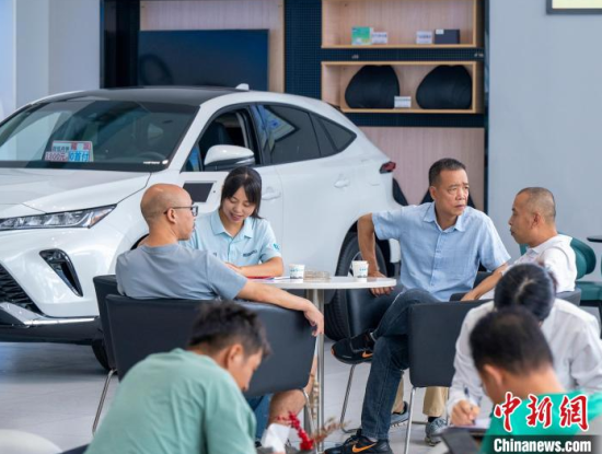 6月3日,廣西梧州市一汽車專賣店內(nèi),顧客在了解選購(gòu)車型并咨詢汽車“以舊換新”補(bǔ)貼政策。今年以來(lái),梧州市汽車消費(fèi)市場(chǎng)持續(xù)活躍,成為拉動(dòng)消費(fèi)增長(zhǎng)重要引擎,新能源汽車成消費(fèi)亮點(diǎn)。眾多車企推出優(yōu)惠補(bǔ)貼,疊加國(guó)家和地方補(bǔ)貼政策,加大購(gòu)車優(yōu)惠力度,吸引消費(fèi)者進(jìn)店咨詢選購(gòu)、試乘試駕,助推銷量穩(wěn)步提升。何華文 攝