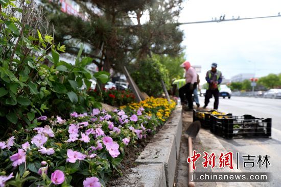 5月25日,記者在河南街與長(zhǎng)白山西路交匯路段看到,園林工人正在緊張有序地栽種花苗,鮮花成片鋪展,紅黃相間,美不勝收。正在散步的市民王女士一邊駐足觀賞一邊拍照留念,她說(shuō):“這些花開(kāi)得真美,走在街上都覺(jué)得心情特別好!