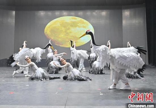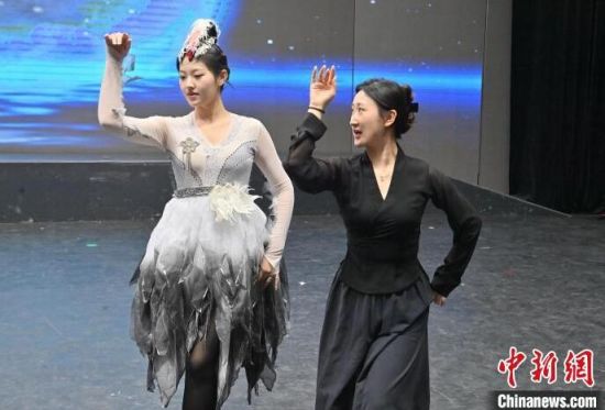 4月9日,在安圖縣文化館,一群年輕人在表演鶴舞。張瑤 攝