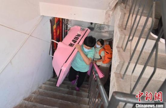 助浴師準(zhǔn)備入戶(hù)為老人洗澡。張瑤 攝助浴師在做助浴前的準(zhǔn)備。張瑤 攝助浴師在為老人洗澡。張瑤 攝助浴師在為老人洗澡。張瑤 攝