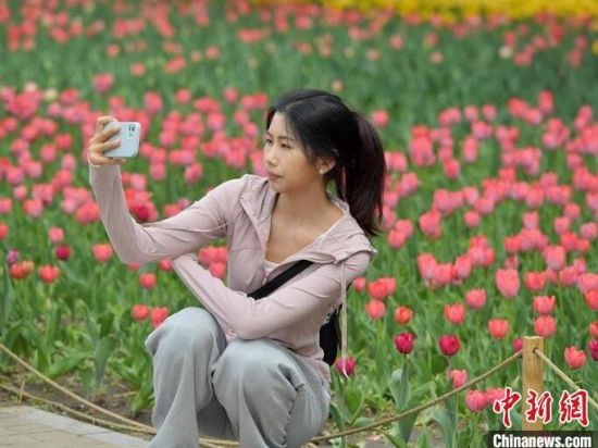 5月6日,吉林長(zhǎng)春,民眾正在公園內(nèi)打卡拍照。初夏時(shí)節(jié),長(zhǎng)春公園中的50萬余株郁金香迎來盛花期,吸引大量民眾前來賞花。(完)