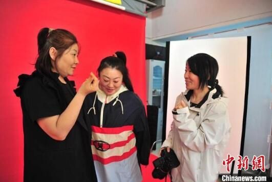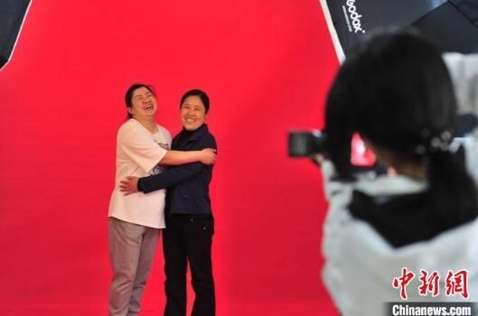 市民正在拍攝家庭照。市民正在拍攝家庭照。一對拍照的姐妹相擁而笑。攝影師在為市民設(shè)計(jì)造型。攝影師在為市民設(shè)計(jì)造型。