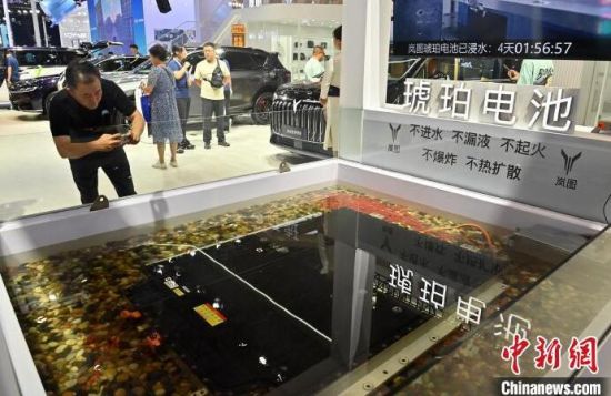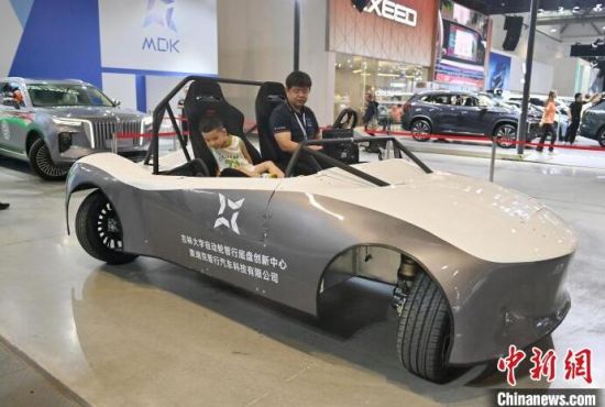 7月13日,吉林長(zhǎng)春,參展商在展示安裝了自動(dòng)輪智行底盤汽車的原地轉(zhuǎn)向功能。在第21屆長(zhǎng)春國(guó)際汽車博覽會(huì)上,汽車產(chǎn)業(yè)的前沿技術(shù)成果集中亮相,吸引參觀者的目光。(中新社記者 張瑤/攝)