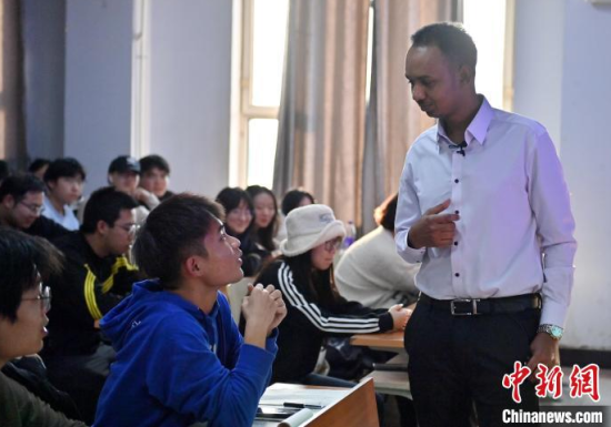 11月6日,在長(zhǎng)春師范大學(xué),馬宋在上課。1993年出生的馬宋來自蘇丹,畢業(yè)于中國地質(zhì)大學(xué)計(jì)算機(jī)技術(shù)與科學(xué)專業(yè),畢業(yè)后在福建一家企業(yè)做IT工程師。喜歡教學(xué)的馬宋,去年來到長(zhǎng)春師范大學(xué)“跨界”成為一名計(jì)算機(jī)專業(yè)的老師。馬宋說,他和中國的年輕人相處得非常愉快,未來他想扎根在這里,為學(xué)生們傳道授業(yè)解惑。中新社記者 張瑤 攝
