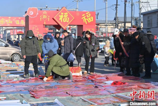1月20日,民眾在長(zhǎng)春樂山大集上選購商品。歷經(jīng)百年的樂山大集,是長(zhǎng)春市具有代表性的傳統(tǒng)大集。春節(jié)臨近,大集更加熱鬧,傳統(tǒng)年貨一應(yīng)俱全,民眾辦年貨、品美食,熱鬧非凡。中新社記者 張瑤 攝