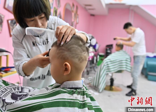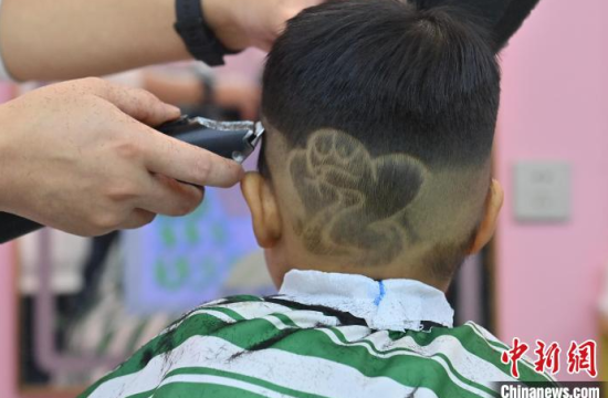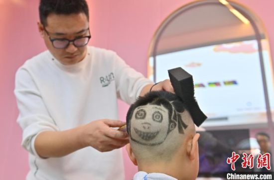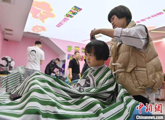 3月1日,農(nóng)歷二月初二,在吉林長春一家兒童理發(fā)店,家長紛紛帶著孩子來“剃龍頭”,理發(fā)店還為孩子們設(shè)計(jì)了各種有趣的發(fā)型。中新社記者 張瑤 攝