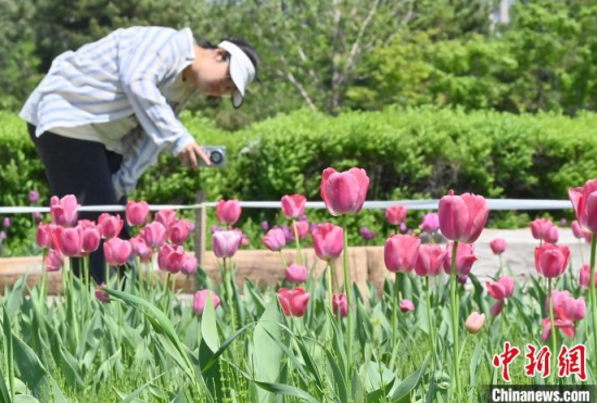 5月15日,在長春市長春公園內,近十萬株郁金香競相綻放,吸引了眾多游客前來觀賞。當天,“幸福匯·郁見美好”長春公園郁金香主題觀賞季系列活動正式啟幕,游客在賞花觀景中享受夏日清涼。中新社記者 張瑤 攝