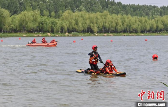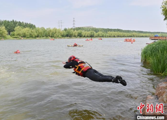 6月18日,長(zhǎng)春市消防救援支隊(duì)開(kāi)展水域救援實(shí)戰(zhàn)訓(xùn)演。此次訓(xùn)演按照不同救援場(chǎng)景需要,設(shè)置了繩索救援、潛水救援、入水救援、岸邊救援和IRB實(shí)操等5個(gè)訓(xùn)練區(qū)域32項(xiàng)訓(xùn)練科目。中新社記者 張瑤 攝