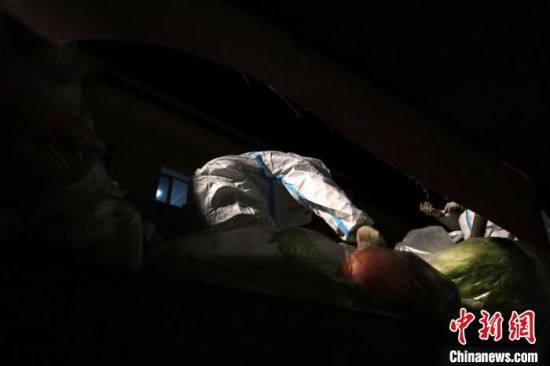 中新網(wǎng)通化1月26日電 (蒼雁 孫博妍)雖然已到26日凌晨,通化卻并未“睡去”。一輛滿載蔬菜的面包車快速駛過落雪的街路,停在左岸樺苑A區(qū)門前。“這是‘今天’(25日)到達的最后一輛送菜車。”