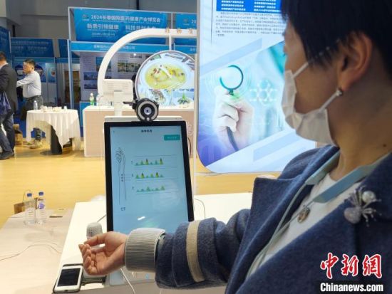 另一側(cè),一臺智能脈診儀器前參觀者眾多。只需將傳感器綁在手腕處,幾分鐘后,便可探知人體健康狀況。根據(jù)所得結(jié)果,系統(tǒng)會提出個體化健康指導(dǎo)方案和預(yù)防保健建議,規(guī)避潛在健康風(fēng)險(xiǎn)。