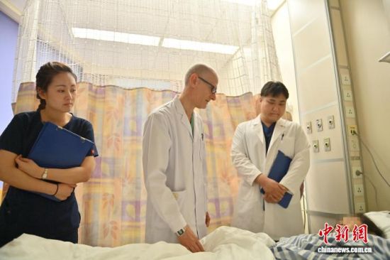 10月17日,吉林長(zhǎng)春,拉瓦若(左二)帶醫(yī)生查房。張瑤 攝