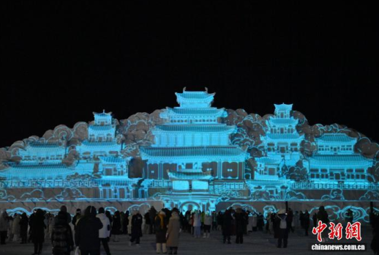 吉林長(zhǎng)白山點(diǎn)亮雪雕版“云頂天宮”